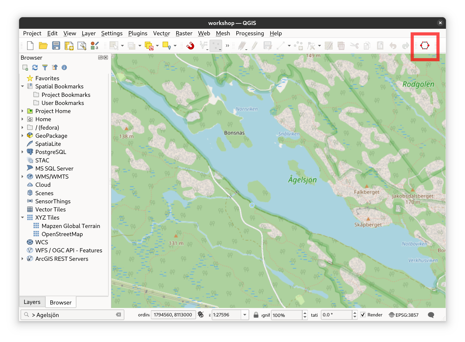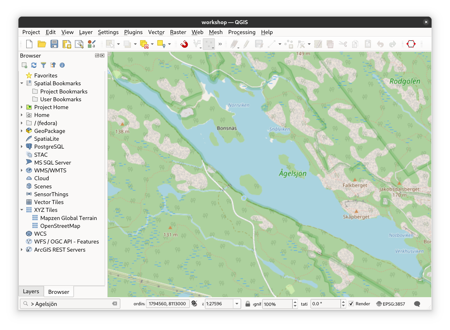 We’ll go with Ågelsjön Lake, located near Norrköping, as the setting for our hike. But you can choose whatever lake appeals most to you. For the basemap, we’ll stick with the basic OpenStreetMap layer from the default XYZ tiles in QGIS. This is a good choice, since the openreouteservice’s an thus the ORSTool’s routing is based on OSM data. Using the same map ensures that the generated routes align perfectly with the visible roads and trails, without any noticeable offset.